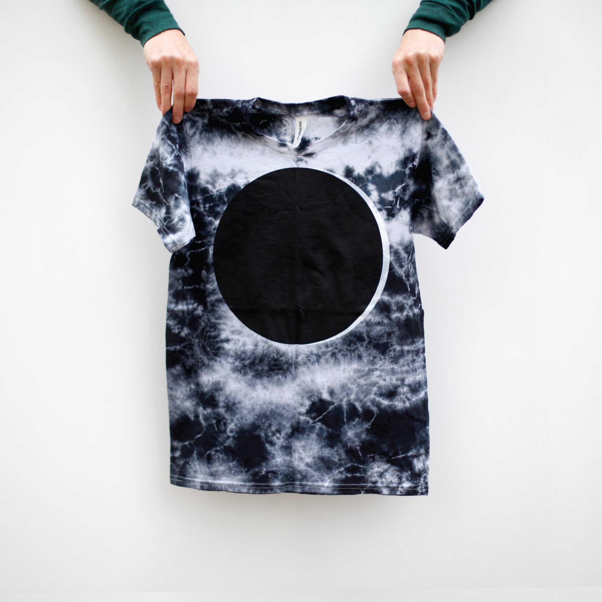 Whether you are making magic in the moonlight or swirling and twirling in the sunshine this two tone tie dye tunic can move and groove with you and will make you look good and feel good while youre dancing through life. The Eclipse Tie Dye Tunic top is the perfect blend of match-with-everything black and a subtle splash of tie dye design eclipsing the bottom of the tunic. Check out our eclipse tie dye selection for the very best in unique or custom handmade pieces from our clothing shops. The one used today will show how to make a bulls-eye aka eclipse style tie-dye pattern like a pro. Eclipse Tie Dye Biguaçu. Product Details - Eclipse Tie-Dye Tee. 22300 22300.